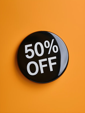 Black '50% OFF' Promotional Sign on a Light Orange Background