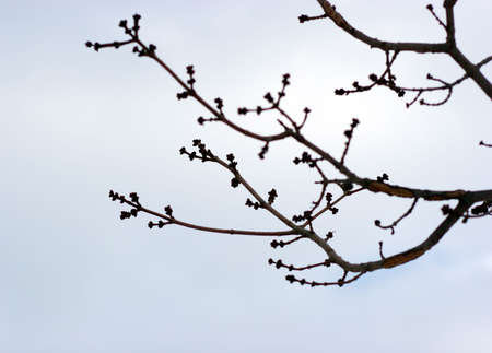 Black branches in the sky white in bad day.