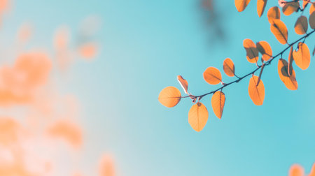 Autumn background. Autumn leaves on tree branch in sunny light with copy space. Beautiful yellow hornbeam leaves on branches in fall. Autumn forest. Tranquil moment