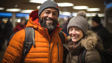 Happy couple at the airport, smiling together