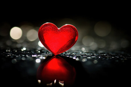 Red hearts with sparkles on a captivating bokeh background that enchants the eye and heart