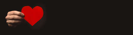Hand holding paper heart on black background. Health insurance, organ donor day, charity. World health day, world mental health day, world heart day, gratitude and all lives matter banner photo