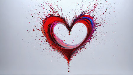 Two heart shapes emerge from vibrant splashes of paint, blending colors of passion and creativity. This dynamic artwork showcases the emotion of love in a striking and imaginative way.
