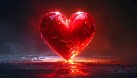 A vibrant red heart shape glows against a stark black background. The image presents a soft, gradient effect, with the color transitioning from deep red to a lighter shade. The composition is simple, emphasizing the heart's form. This visual could be used in various commercial projects to convey messages of love, romance, or care.