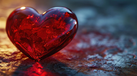 A small red heart sitting on a gray surface, casting a subtle shadow. The heart is centered in the frame and illuminated from above, creating a sense of depth and dimension. Clear details and vibrant colors enhance visual appeal.
