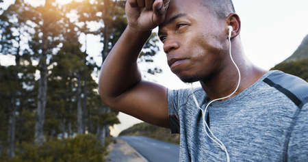 If youre not sweating, youre not working hard enough. Shot of a sporty young man taking a break while exercising outdoors.