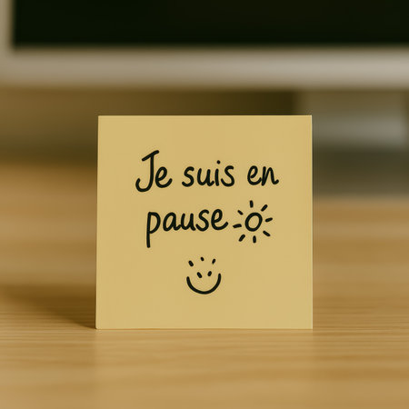 Color sticker leaves placed on white board with mobile phone and pen