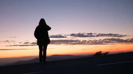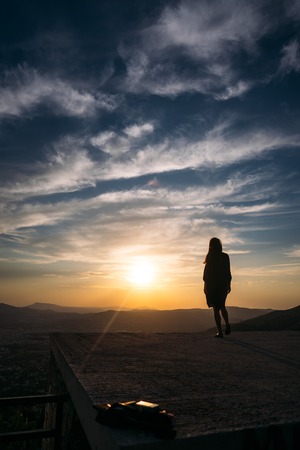 A silhouette of a lonely person enjoying the beautiful view of the sunset