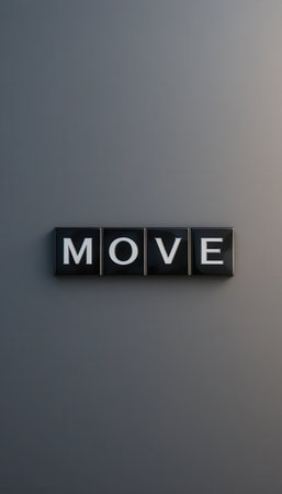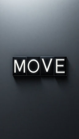 A modern and minimalistic design featuring the word MOVE in bold letters against a gray background. Ideal for motivation themes.