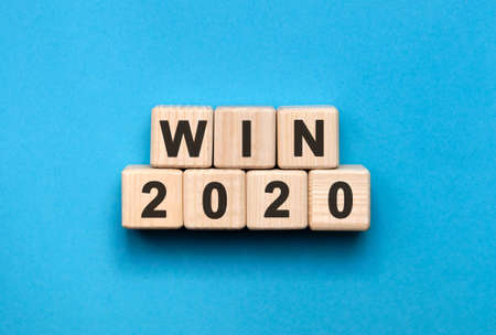 WIN 2020 - text on wooden cubes, a blue background