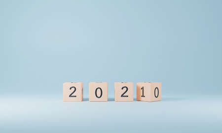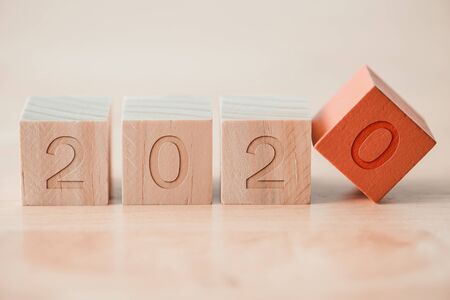 Wooden blocks for change year 2020 to 2021. New year and holiday concept.