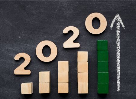 New year 2020 concept. business idea over wooden board