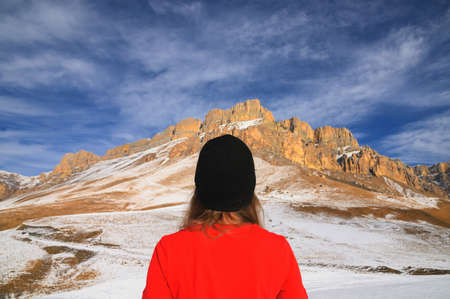Lonely man looks at the mountains