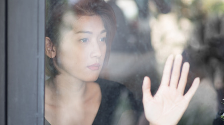 Asian woman standing at the window watching