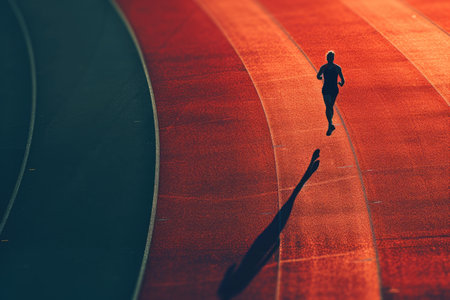 Sunrise Strides: Runner's Silhouette on Stadium Track