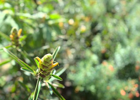 Green botanical natural herbal plant with light bokeh background. Nature, greenery, asian herbal plant, freshness environment concept.