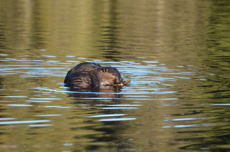 A beautiful lovely Muskrat swimming in the water on a sunny day