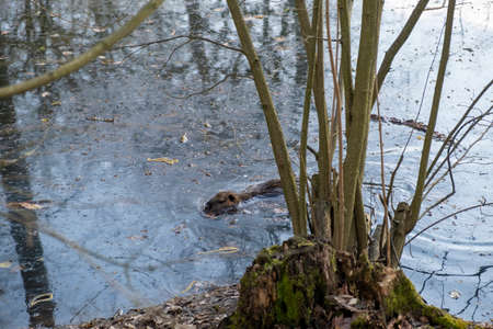 Beaver swimming in cold winter water nature landscape