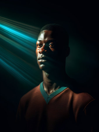 Portrait of a handsome young black man with a beam of light in his eyes