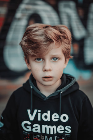 Young Boy Gazing Directly at Camera With Curiosity and Innocence