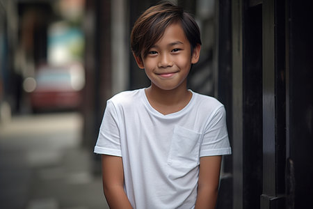 Thai Teenager Boy Portrait Against Plain Wall in Natural Light