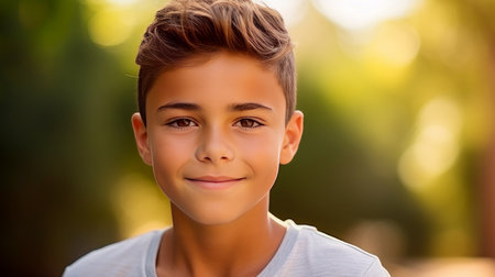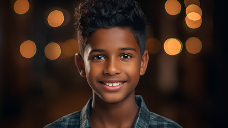 Portrait of a cute boy smiling at the camera with bokeh background