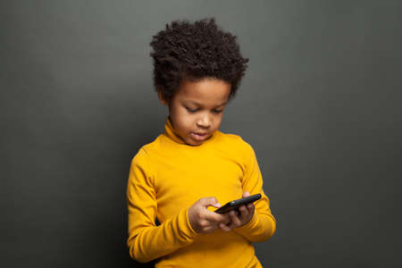 Small black child playing with smartphone