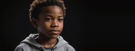 An African American Juvenile Boy, Isolated On A Black Background With Copy Space. Generative AI