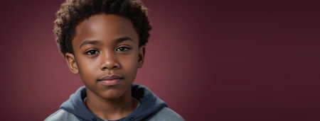 An African American Juvenile Boy, Isolated On A Ruby Background With Copy Space. Generative AI