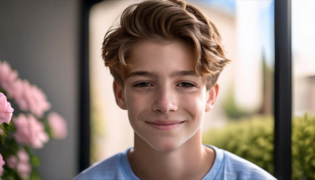 a young teen looking at the camera, created with generative ai