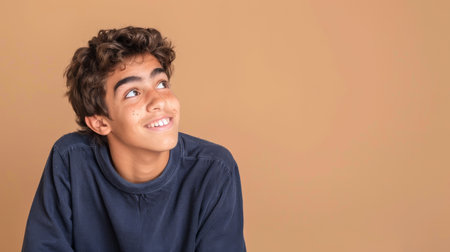 a Hispanic teenager showing determination on a beige studio background