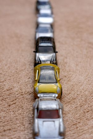 Vertical line of children's toy cars
