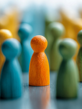 Leadership and inclusion. Colorful figurines on the surface.