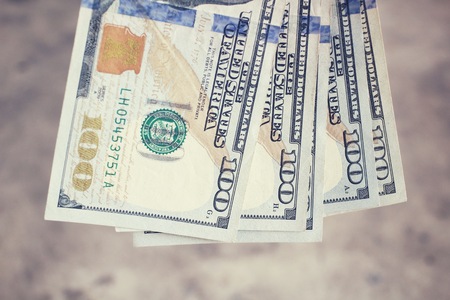 American cash dollars close-up. One Hundred Dollar Banknotes. Soft focus image.