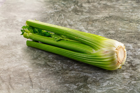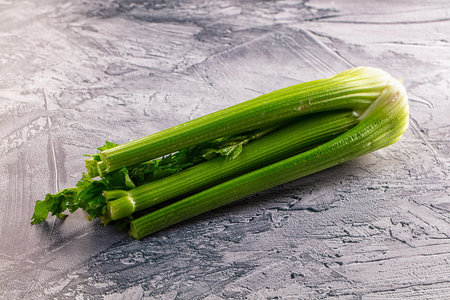 Fresh celery sticks on gray