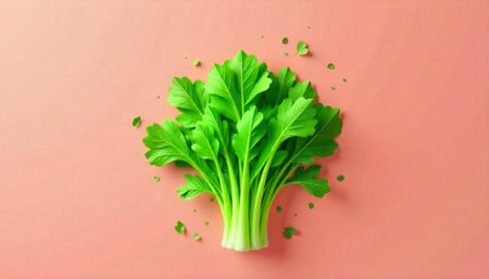 Vibrant cilantro bunch on green background studio shot