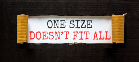 One size does not fit all symbol. Concept words One size does not fit all on beautiful white paper. Beautiful black paper background. Business one size does not fit all concept. Copy space.