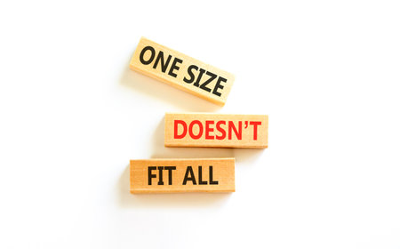 One size does not fit all symbol. Concept words One size does not fit all on beautiful wooden blocks. Beautiful white background. Business one size does not fit all concept. Copy space.