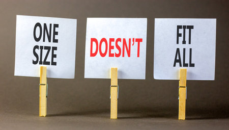One size does not fit all symbol. Concept words One size does not fit all on beautiful white papers on clothespin. Beautiful gray background. Business one size does not fit all concept. Copy space.