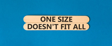 One size does not fit all symbol. Concept words One size does not fit all on beautiful wooden sticks. Beautiful blue background. Business one size does not fit all concept. Copy space.