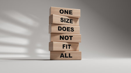One size does not fit all symbol. Concept words One size does not fit all on wooden blocks.One size does not fit all business concept. Copy space.3D rendering on white background.