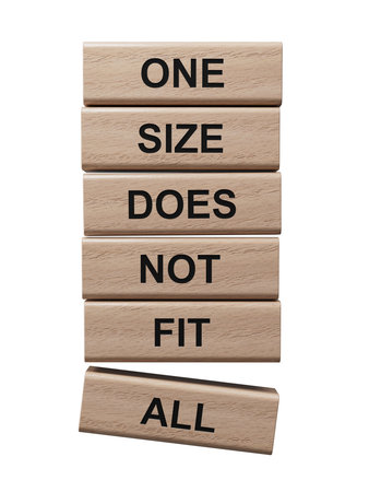 One size does not fit all symbol. Concept words One size does not fit all on wooden blocks.One size does not fit all business concept. Copy space.Supports PNG files with transparent backgrounds.