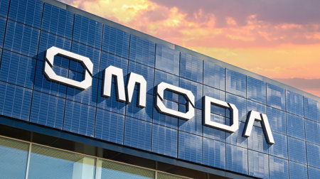 Samara, Russia - April 16, 2024: Car showroom of a Chinese brand Omoda. Official dealership sign of Omoda on the wall of the office building