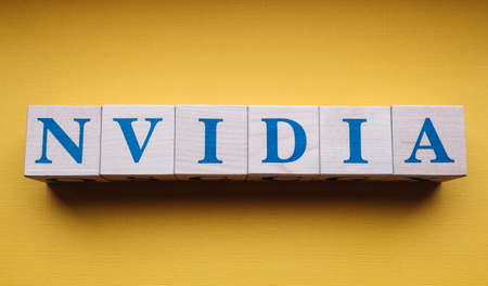 January 31, 2022. Santa Clara, California. The name of the Nvidia company, laid out from wooden cubes.