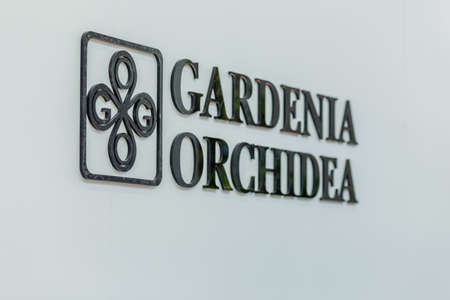 BOLOGNA (ITALY), SEPTEMBER 26, 2018: light is enlightening GARDENIA ORCHIDEA logo at CERSAIE, international exhibition of ceramic tile and bathroom furnishings