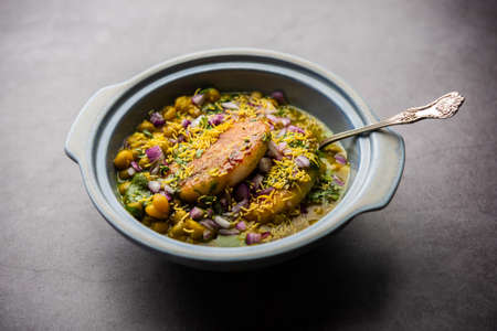 Ragda pattice is a dish of mashed potato patties and pea sauce, and is part of the street food culture in the Indian state of Maharashtra