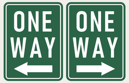 One Way Green Sign. Direction Road Sign. Vector isolated illustration