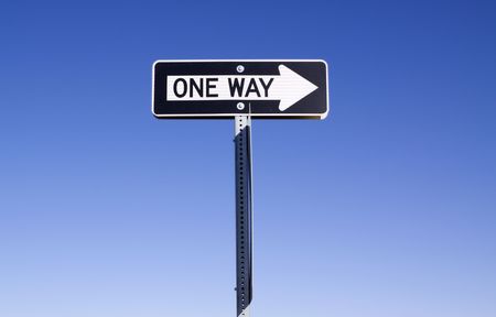 One Way traffic sign, color toning applied, selective focus, New York City, USA.