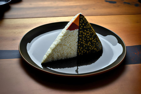 Japanese Onigiri, traditional Japanese food, copy space. ai generated