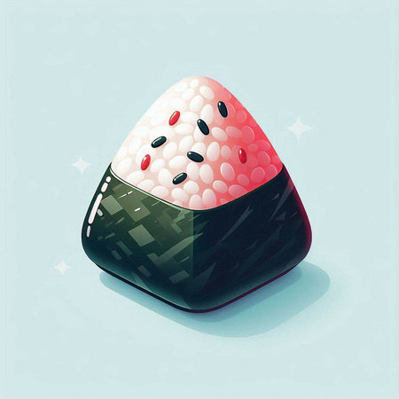 A beautifully crafted Japanese rice ball garnished with black sesame seeds, capturing the essence of traditional Asian cuisine in minimalist style.